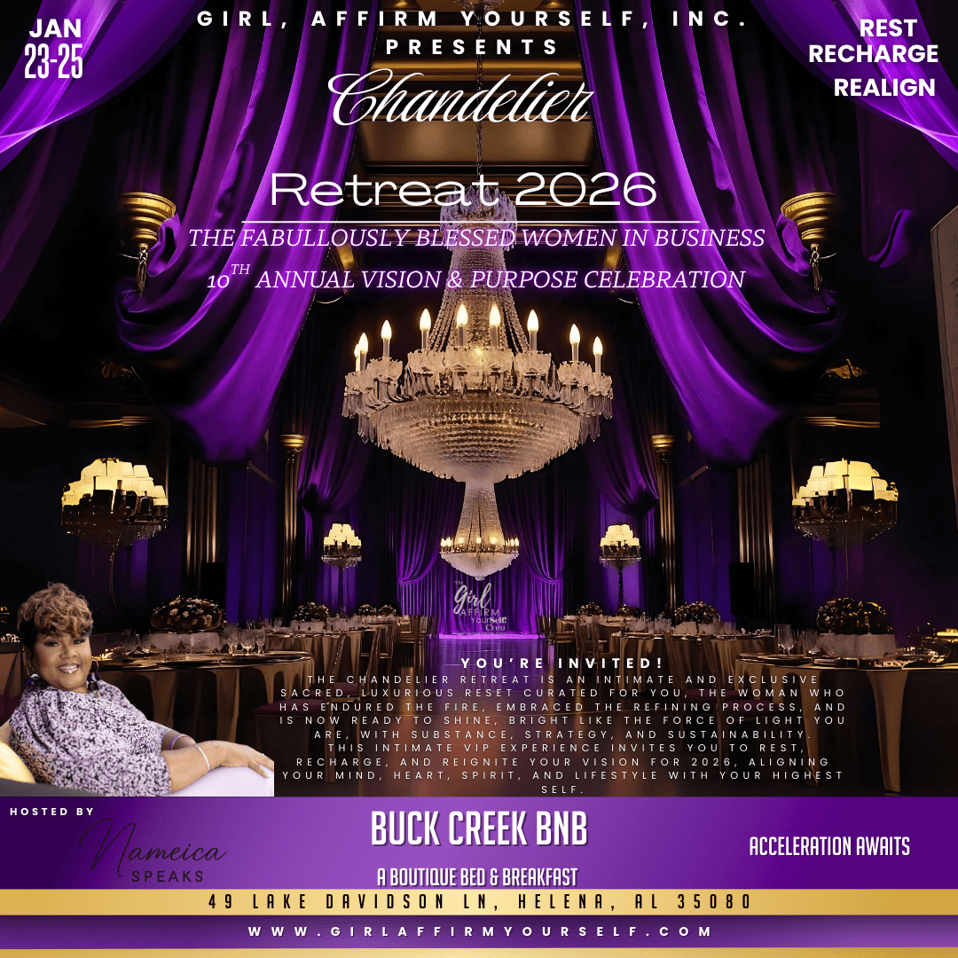 Girl, Affirm YourSelf! Inc. exists to provide the tools, resources, and support the visionary woman needs to grow in confidence, resilience, and purpose. We believe in empowering women to boldly walk in their calling, utilize their gifts, and lead lives of faith-driven significance. Here is where she finds empowerment, growth, and genuine relational bonds that propel her into her calling.